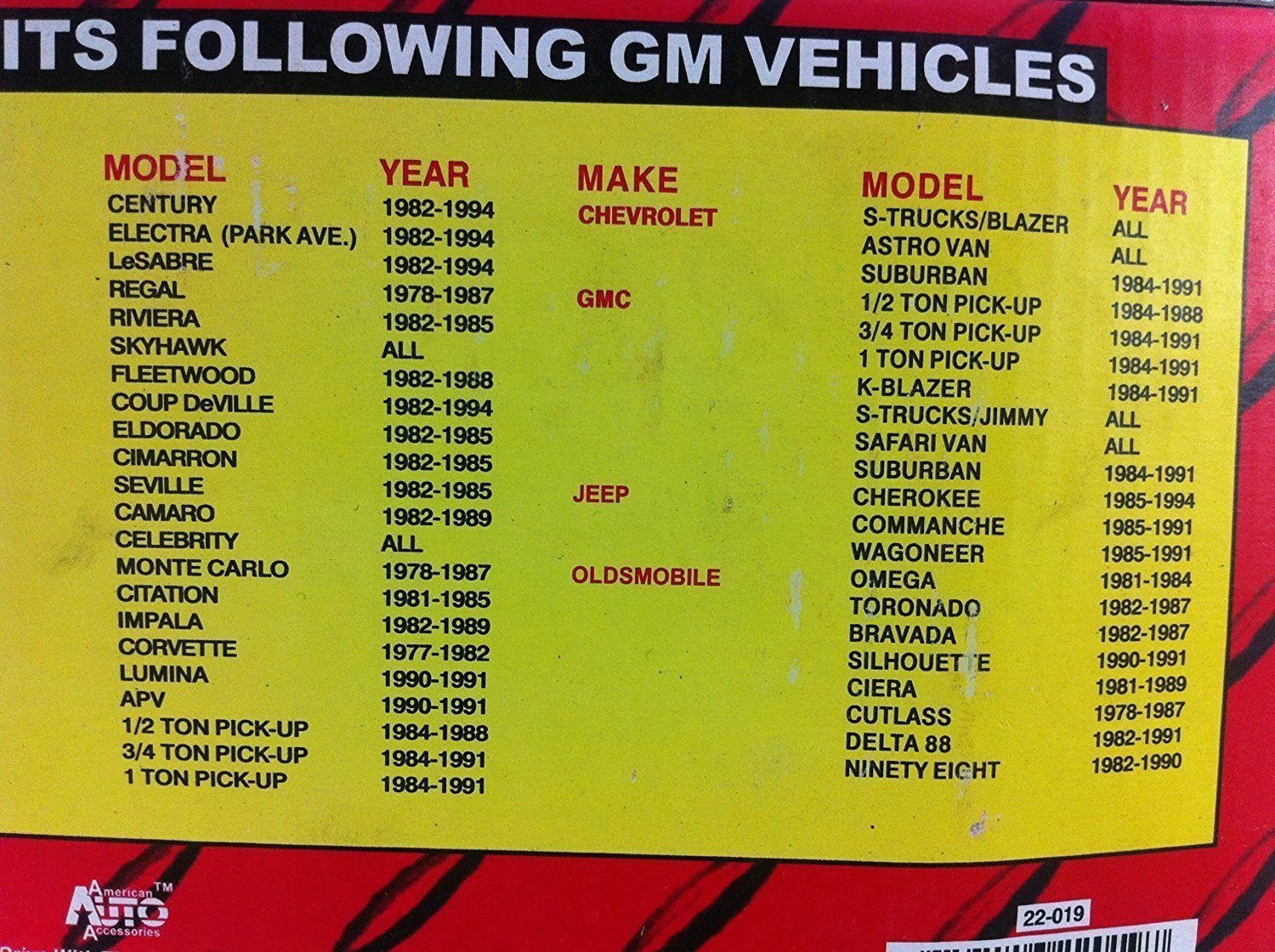 For Oldsmobile Omega 81-84, Toronado 82-87, Bravada 82-87, Silhouette 90-91